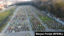 Аэрофотосъемка и фотографии, сделанные за последний год, показывают, как быстро разрослось кладбище. Официальное число погибших украинских военных остается тайной, но во Львове масштаб потерь виден ряд за рядом.